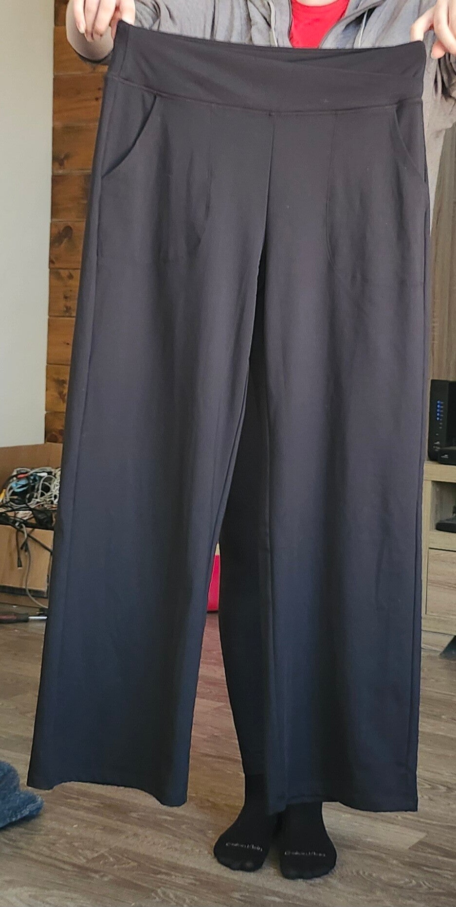XL , fait large aussi. Jambe très large, tissu confortable.